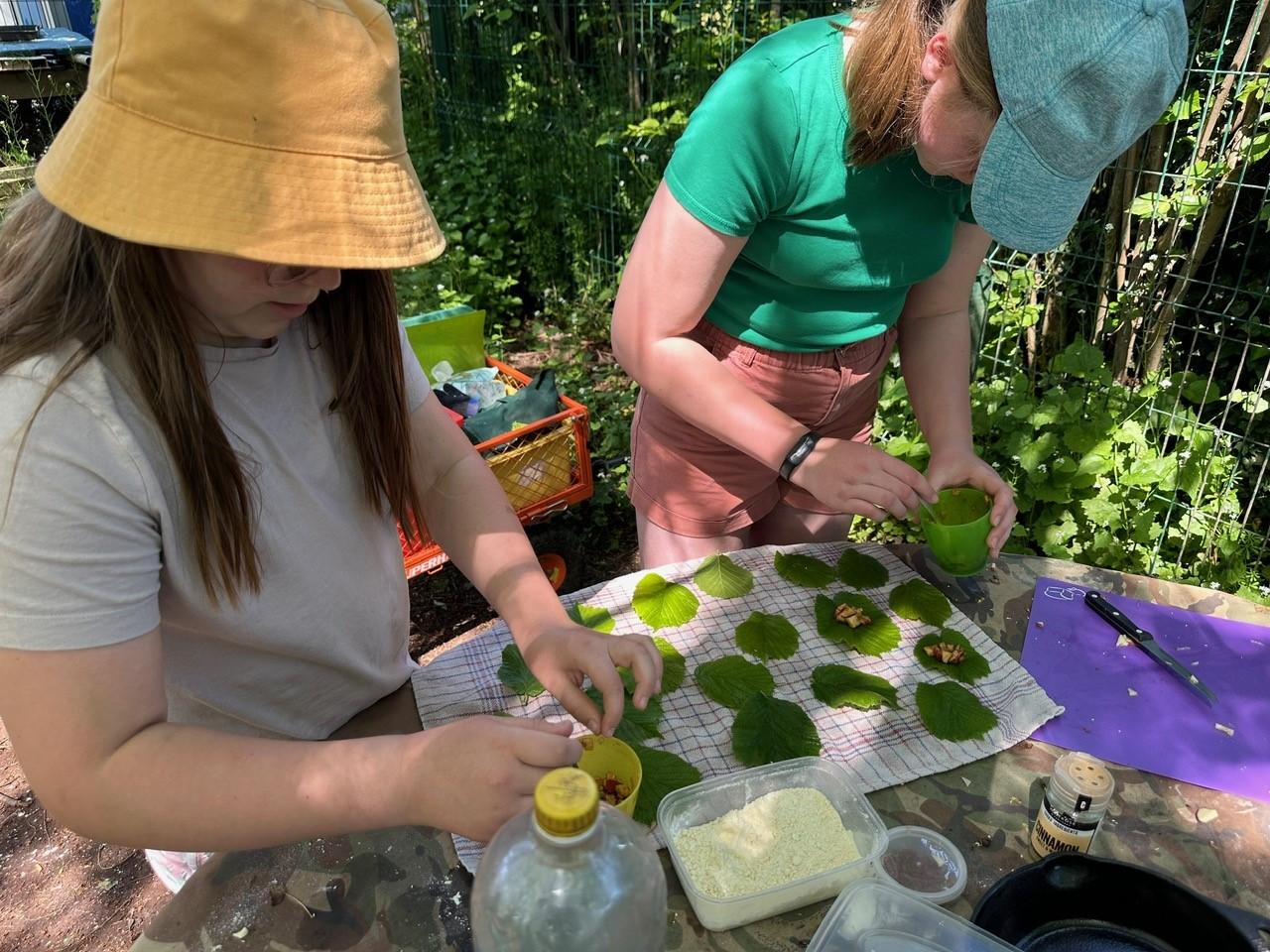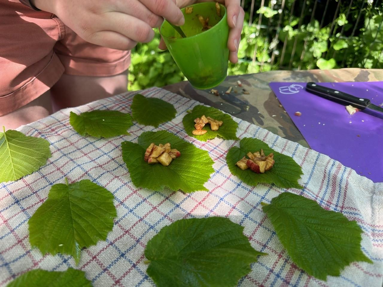 Orienteering and apple crumble hazel leaf parcels