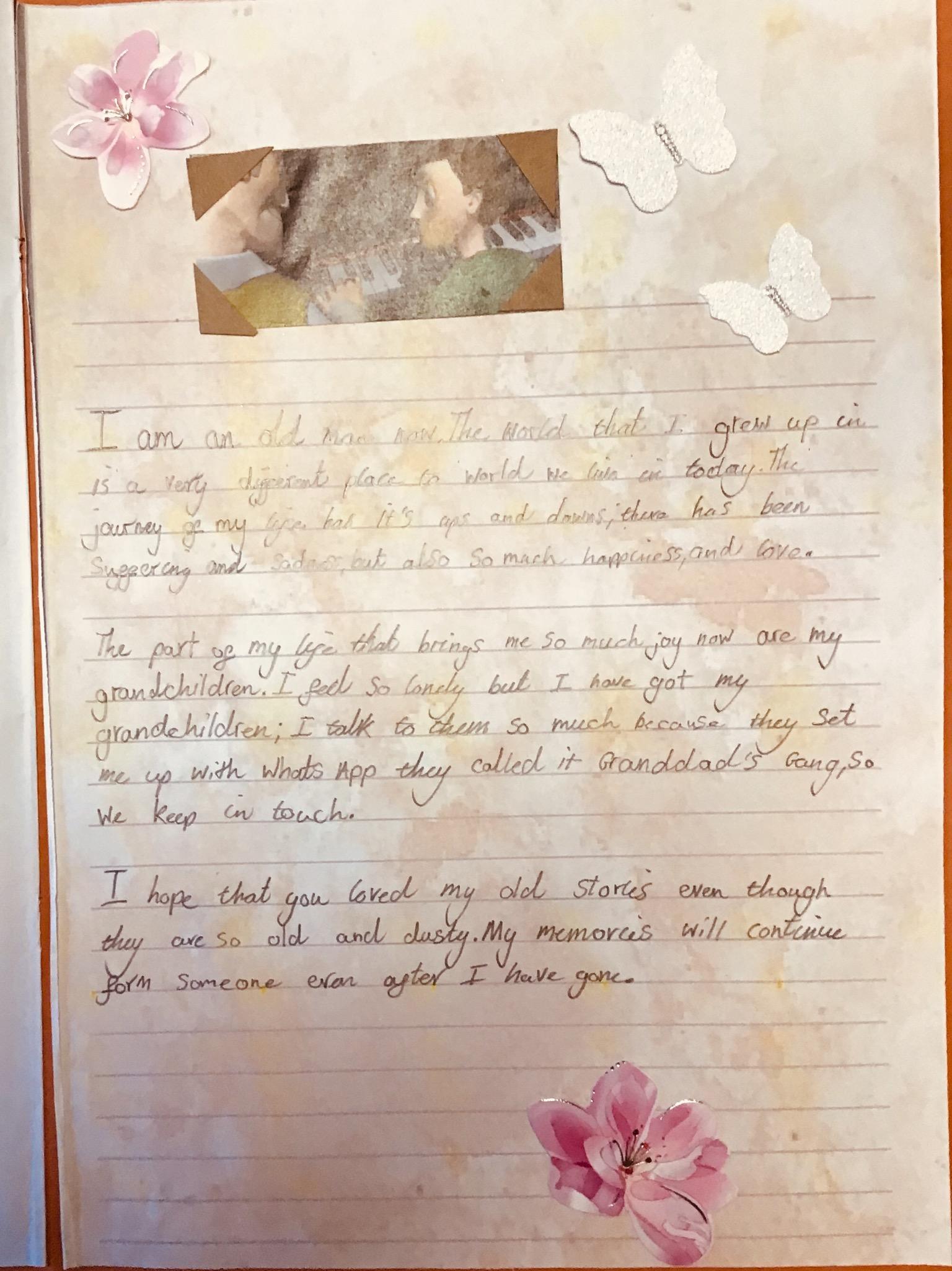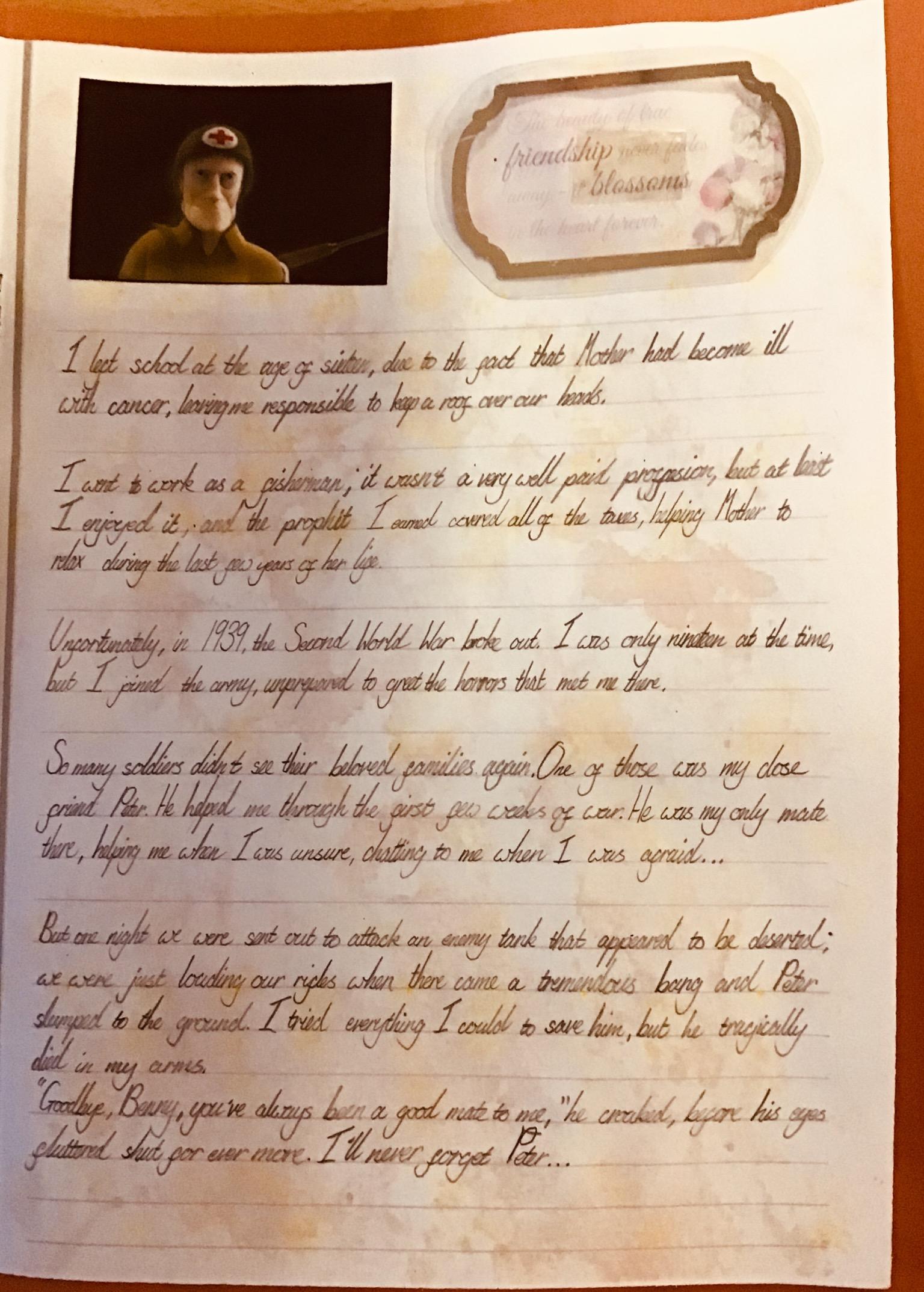 We wrote autobiographies as if we were the old man in the film. We chose sections of our autobiographies to read aloud and made them into films using IMovie.