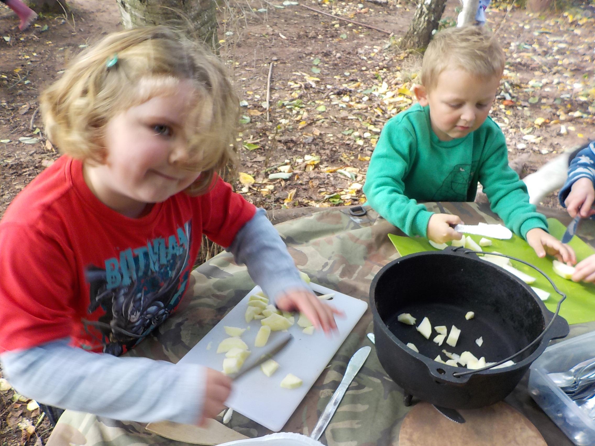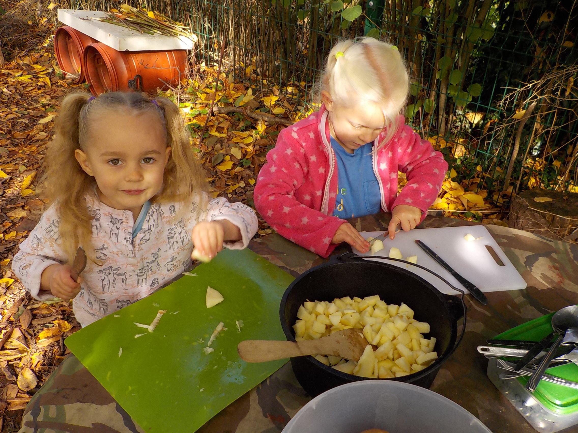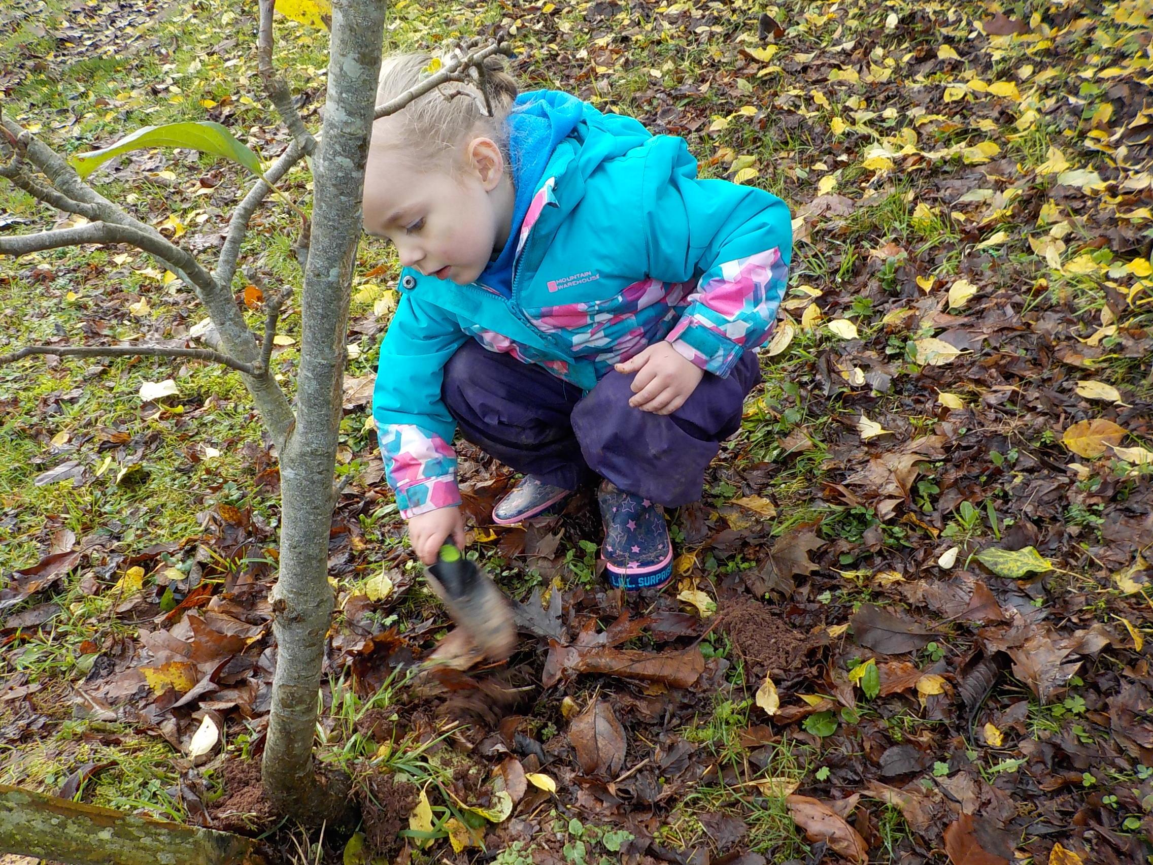 Apple crumble and hunting for leaves and minibeasts