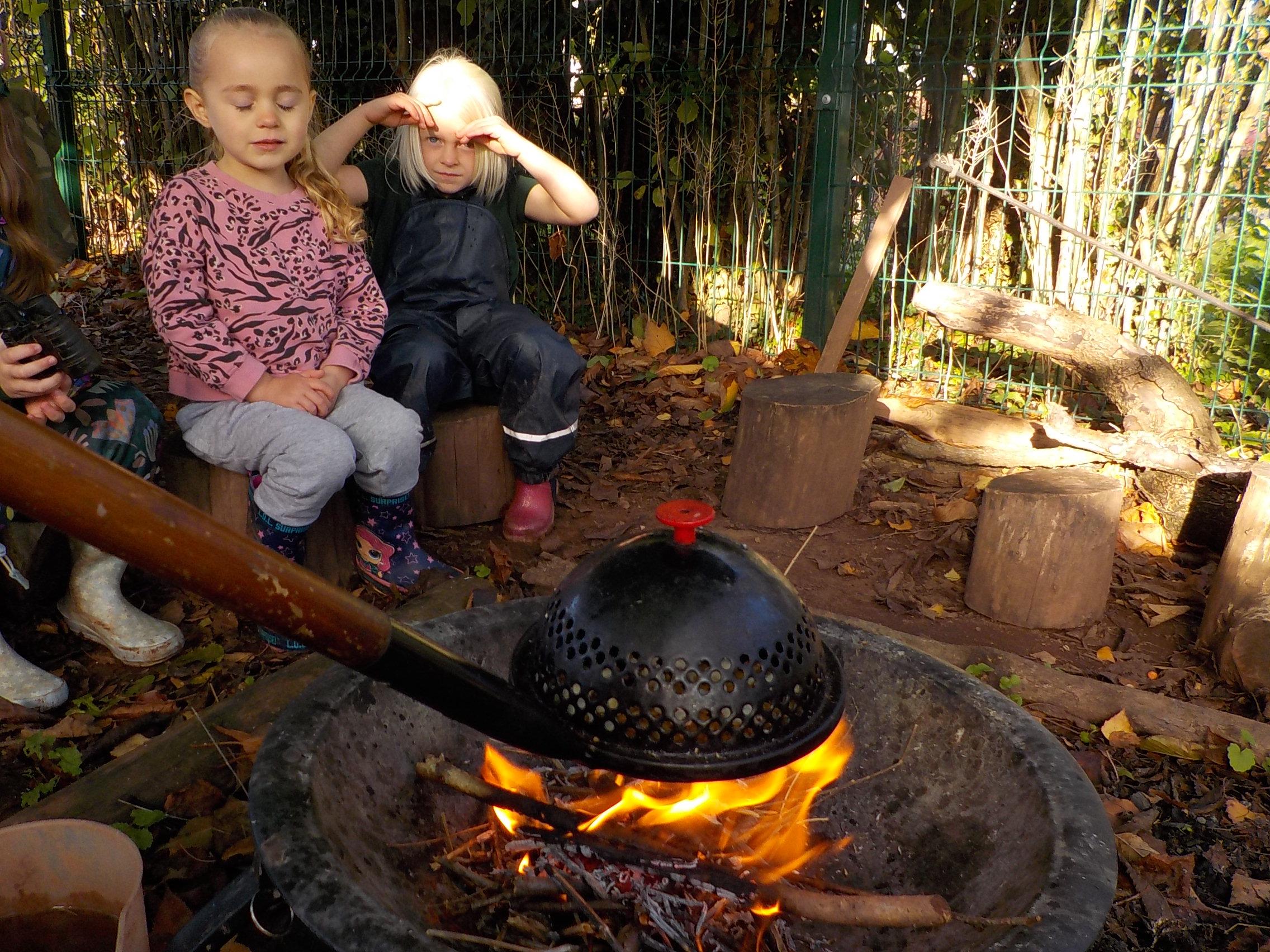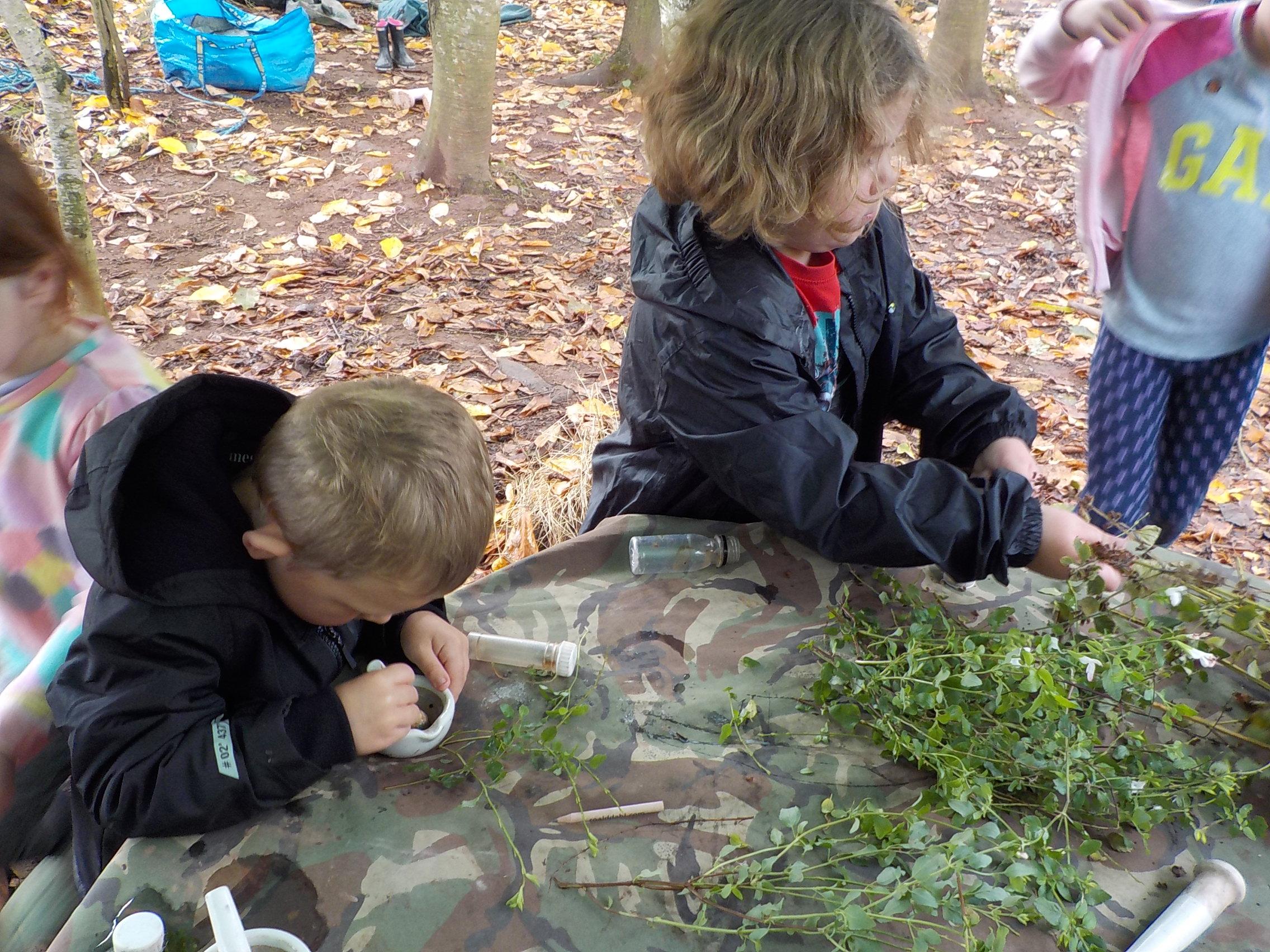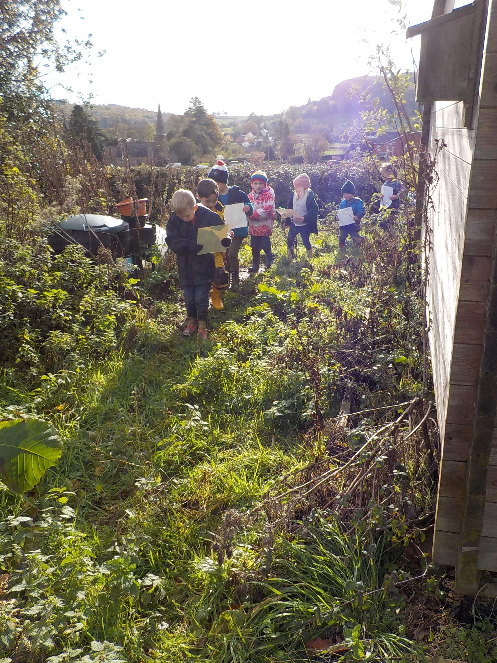 Apple crumble and hunting for leaves and minibeasts